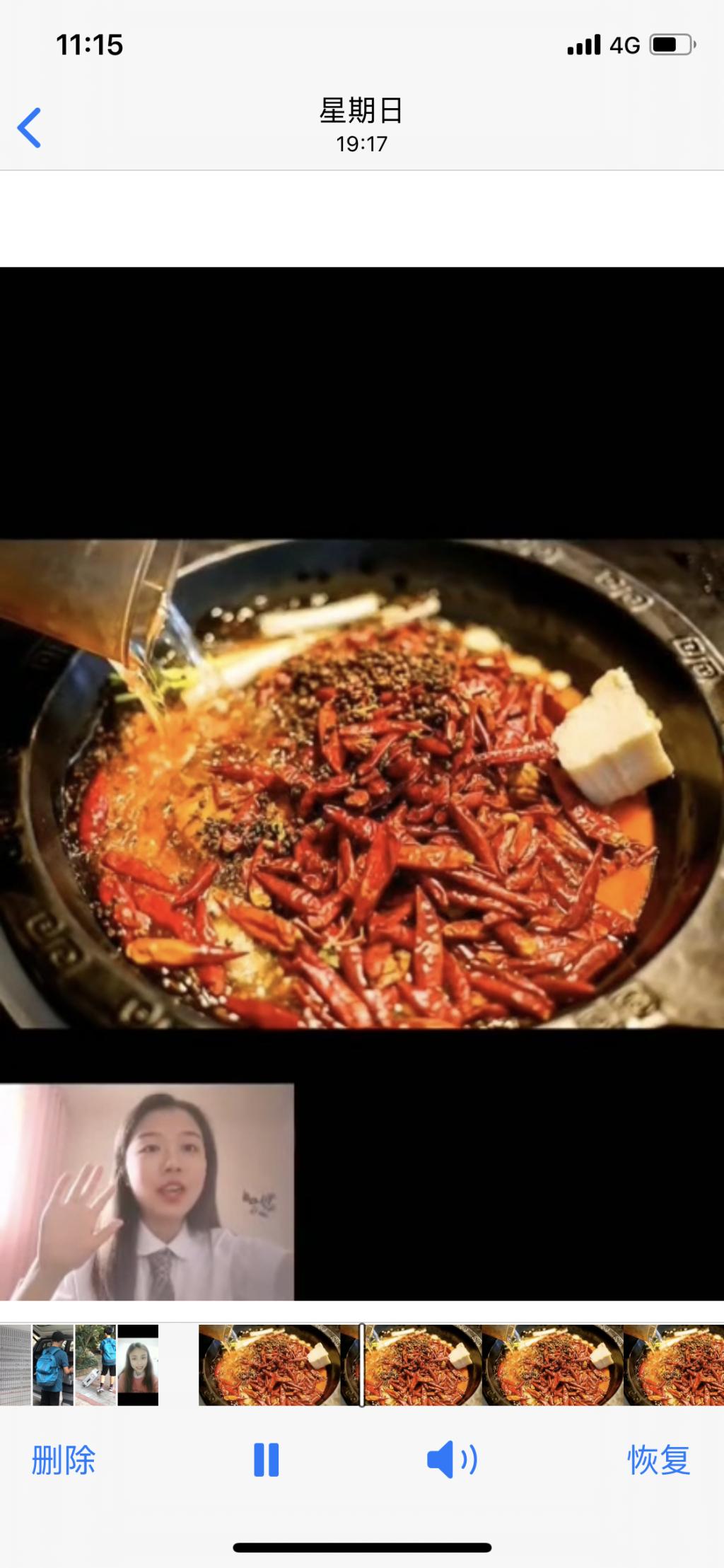 网课进行到12周,学习到中餐这一节,我布置学生录视频,介绍自己最喜欢吃的一道中餐,要求说明推荐理由。要完成这个任务,学生必须大量查阅资料,搜集餐饮相关的英文术语,比如菜名的翻译方法,原材料、调味品、烹饪方法的术语,菜品特色的介绍方法等等。很多学生还运用现代多媒体技术,在视频中加入图片、音乐、字幕等元素,最后呈现出来的视频作业氛围轻松,情景灵活,内容丰富,影音生动形象,达到了预期的效果。