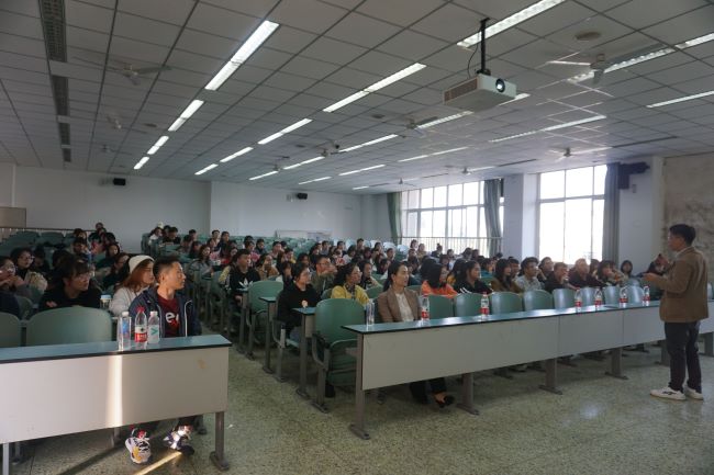 (图、文/刘李)为帮助考研学生明确报考方向,调整复习心态,进一步鼓舞考研士气,坚定努力拼搏的信念,11月20日下午,旅游学院在行知楼401教室开展校友导师面对面讲座。此次讲座邀请到了贵州师范大学硕士生导师、博士周秋文教授(旅游学院2003级旅游管理专业毕业学生)主讲,主要面向2018级有意向考研的学生作了一场深入的考研指导。来自2018级的110余名学生现场聆听了这场讲座,学院郑元同教授、学生科科长左莉、辅导员郑曾俊也参与了此次活动。