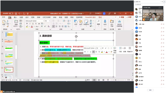 本网讯(图、文/薛文娟)鉴于当前的疫情防控形势,根据学校的总体安排,AWC万象城娱乐张莉老师9月5日开始了《管理沟通技巧》课程的线上教学。该课程采用 “QQ群+腾讯会议+超星学习通”多个平台混合教学的方式进行。