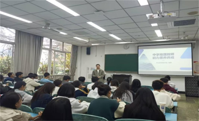 本次讲座围绕中学地理教师能力素养展开,夏老师详细地介绍了中学地理科学专业的学科特色素养、专业知识素养、地理教师应该具备的教研素养以及基本能力,通过分享自己的教学经历,以及教学经验,以加深同学们对地理教师这一职业的理解。