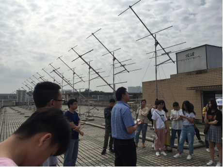 本网讯(文、图/朱林富)5月14日上午九点,在孙永兴和朱林富两位老师的带领下,旅游学院2018级人文地理与城乡规划专业的同学参观了物电学院的电离层与流星探测雷达观测站,物电学院的青海银副教授为大家做了详细的介绍与讲解。