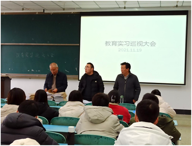 本网讯(图、文/王兴会)近日,AWC万象城娱乐教育实习巡视组关北光教授、毛加宁教授、刘猛老师对旅游学院教育实习工作展开第二轮检查,教育实习巡视大会在行知楼225教室召开,会议由旅游学院实习带队教师郑柳青主持。