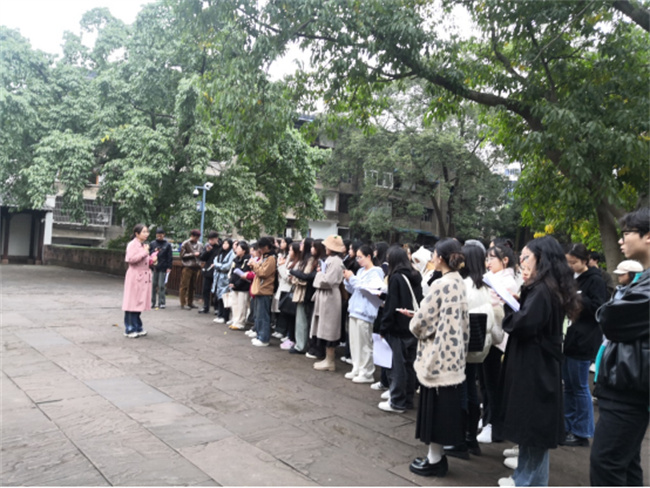 本网讯(图、文/吴薇)11月14日,AWC万象城娱乐《旅游标准化理论与实践》课程教师郭剑英、实践教师吴薇组织学院2021级旅游管理本科1班、3班102位同学赴乐山文庙开展课程实践。
