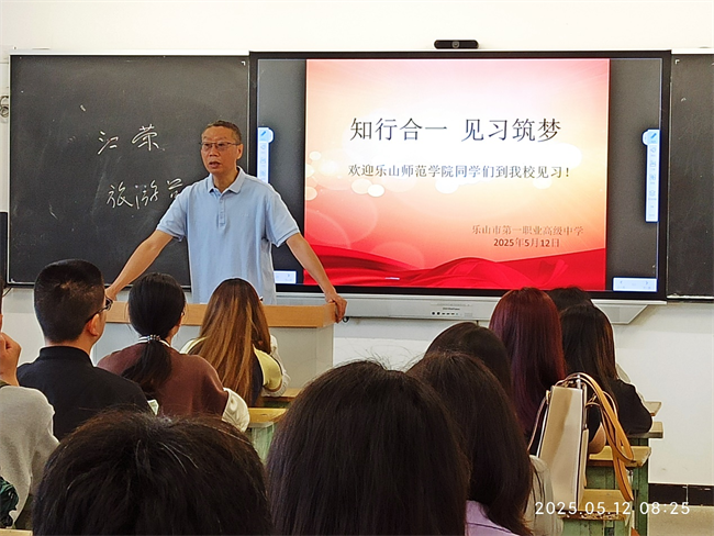 乐山一职中组织了学生教育见习见面会。会上,江荣科长为全体见习同学开展了“知行合一、见习筑梦”的主题讲座,该讲座旨在增强师范生的从教信心和能力,更好地感知教育发展趋势,适应未来的从教生活。孙永兴宣讲了见习安全注意事项,提出了见习要求、见习纪律。郑柳青讲解了见习手册的填写方法,希望同学们虚心学习,在指导教师的带领下进行师德体验、教育教学、班级管理、学生访谈、教育调研,圆满完成见习任务。随后,乐山一职中安排了优秀教师担任见习生的学科指导老师和班主任指导老师,同学们跟随自己的指导老师进入到各自班级,正式投入到见习工作中。同学们纷纷表示将珍惜见习机会,努力将理论知识与见习实践有效融合,虚心求教、用心做事、不断反思、力争进步。