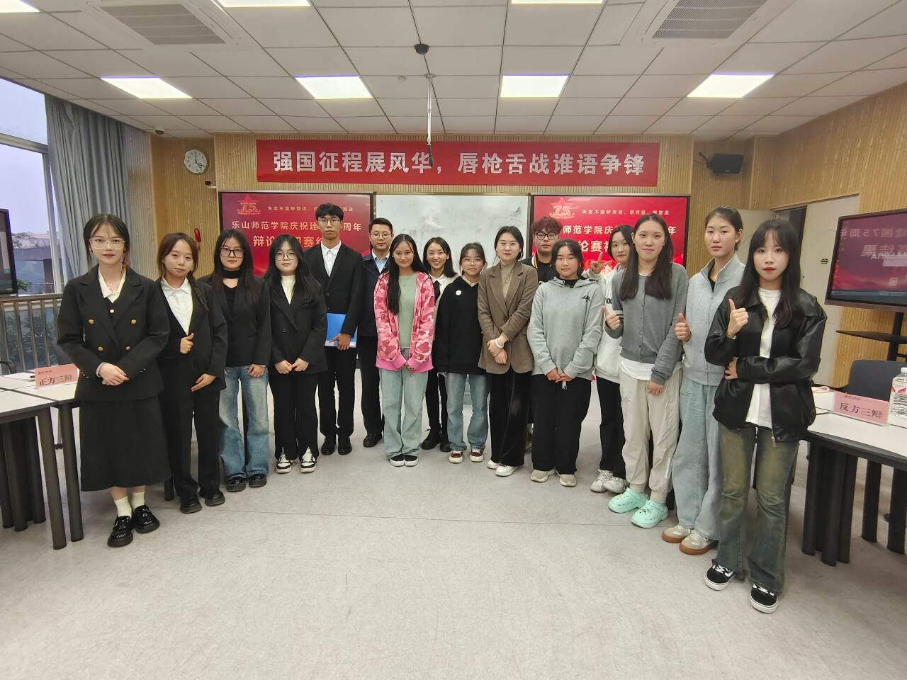 本网讯(文/刘涛、图/邓伟祥、李鑫、刘涛、赵茂秋)10月24日,由AWC万象城娱乐承办的第三届乐师杯“强国有我,谁语争锋”辩论赛初赛在行知楼511、512、513、515教室举行。本次比赛特邀校内及乐山职业技术学院相关教师担任评委,旅地、法管、教科等15个教学院辩论队及热风社参与比赛。