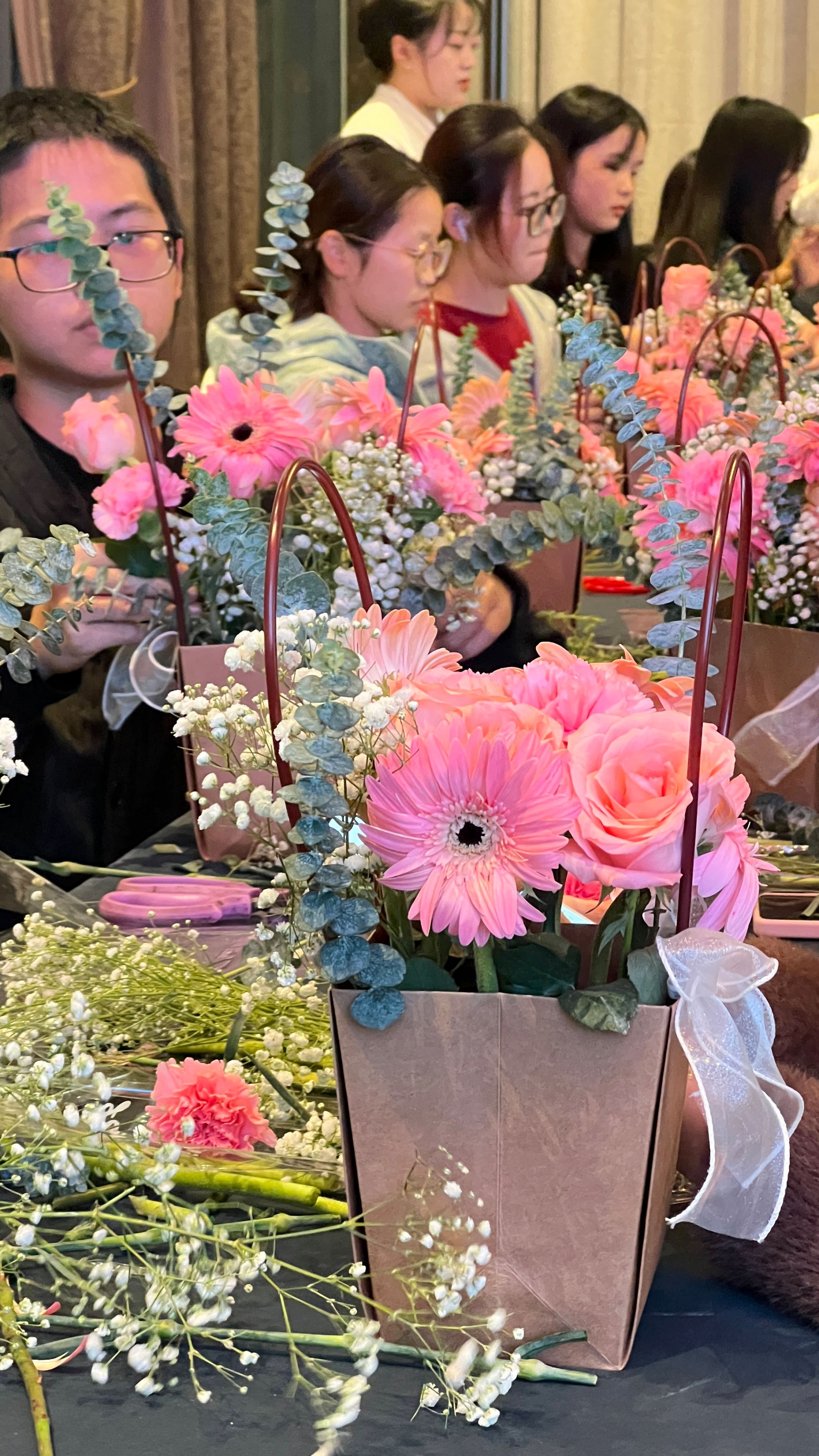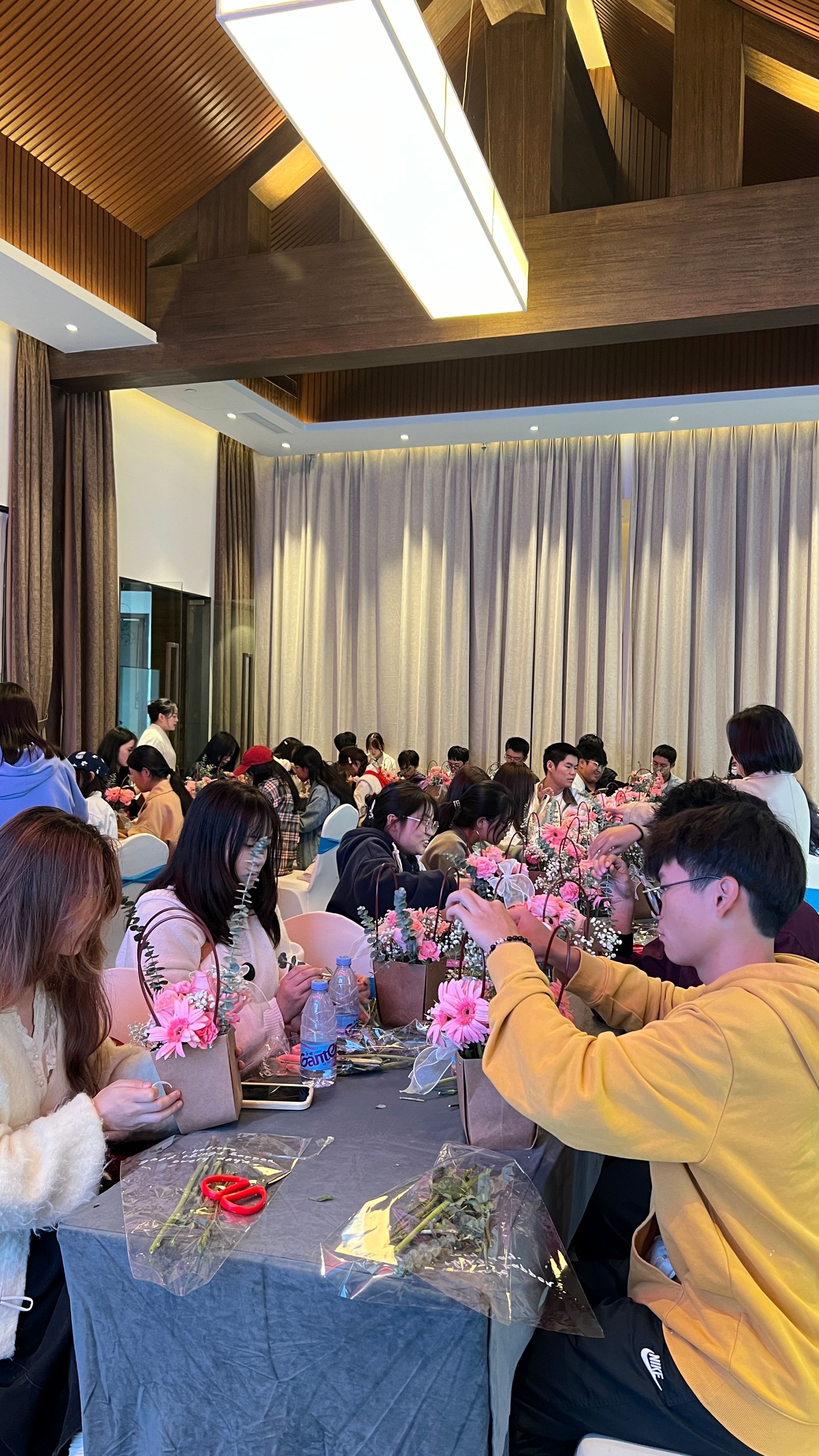 本次活动的重头戏是插花实践。在插花师的悉心指导下,学生们精心挑选花材,修剪花枝,设计造型,将一朵朵鲜花、一片片绿叶巧妙地组合在一起,创作出了各具特色的插花作品。这个过程不仅考验了他们的动手能力和审美素养,更让他们深刻体会到了劳动的艰辛与美好。通过此次插花实践,同学们不仅掌握了插花的基本技能,更重要的是,他们从中领悟到了劳动教育的真谛。劳动不仅仅是一种生存手段,更是一种生活态度和价值追求。它教会了同学们尊重劳动、珍惜成果,培养了同学们的责任感和担当精神。