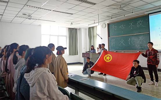 活动在全体迎团旗、唱团歌之中展开,全体同学观看习近平讲话,回顾了中国百年青年运动历史,了解到近代进步青年的历史担当和国运忧思,告诫当代青年牢记五四精神,不忘初心,砥砺前行,为中华民族复兴大业汇聚磅礴力量。活动中各班学生代表以PPT或者视频的形式向我们介绍了她们心中所想的“初心不改,薪火传承”,用激情高扬的演讲感染着观众的“初心”。最后,主持人宣布了此次代表的获奖名单,活动也因此拉下帷幕。