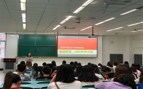 讲座开始,各辅导员先阐明了本次讲座的目的,并为同学们介绍了消防、诚信的相关内容,以及它们在日常生活中的重要性。随后,各辅导员讲述了自己对于消防和诚信的看法,并通过几个发生在大学生身边的事例给同学们加以提醒和建议。同时,每个班级也召开了相关主题班会,鼓励大家积极学习消防知识,增强自身安全知识储备,诚信做事、做人。