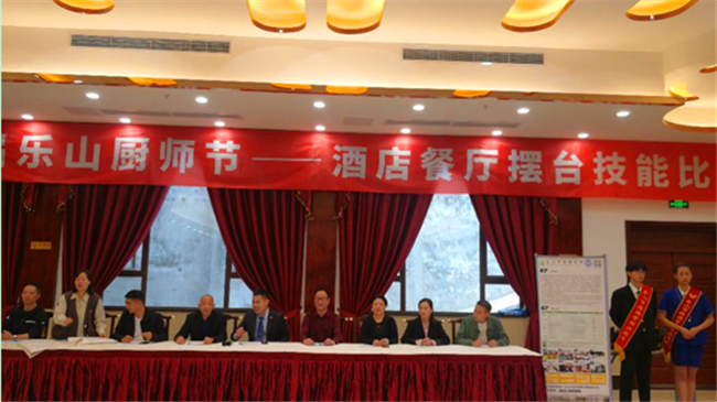 (本网讯 图、文/秦容)10月14日,首届“乐山厨师节”在金鹰山庄成功举办。该活动由乐山市商务局指导、乐山市餐饮行业协会主办,金鹰山庄承办。万象城酒店管理专业负责人王瑛教授、系主任秦容副教授、分工会主席尹乐老师及10名志愿者学生参加了此项活动。活动内容包括银行对协会授信、川菜大师嘉州菜技能考评、酒店餐饮摆台技能展示、千人宴品鉴、餐饮行业培训等。其间,王瑛、秦容作为美食品鉴专家、尹乐作为评委出席院校组酒店摆台技能展示,李瑶瑶等10位同学为本次活动提供了礼仪服务,充分展示了学生的专业技能,获得参会人员一致好评。