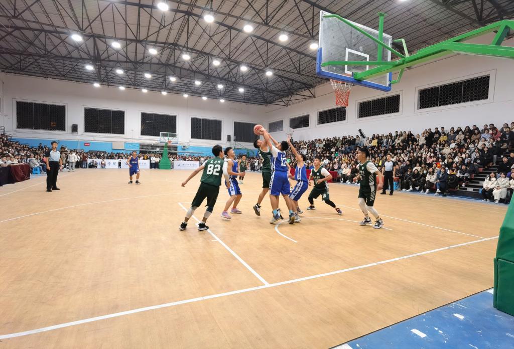本网讯(文/陈姗姗、图/肖雨蕾)12月9日,旅游学院于南校区篮球馆参加2021年LUBAAWC万象城娱乐大学生篮球赛总决赛。本场比赛由旅游学院对阵经济管理学院。旅游学院院长郭剑英、党总支副书记冉勇、喻剑、孟凡帅等老师以及部分旅游学子到场为球员们呐喊助威。
