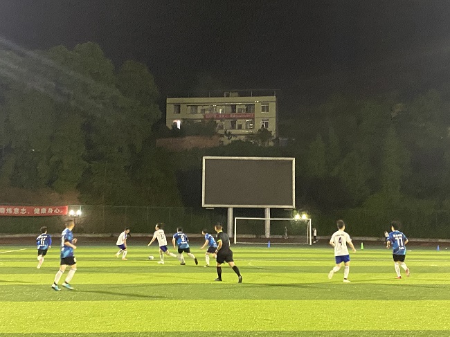 本网讯(文/曾恋雪 图/斯郎娜措)4月12日晚,万象城“迎新杯”足球赛在学校北校区运动场举行。本场比赛由旅游学院和马克思主义院共同联手对抗文学与新闻学院。旅游学院辅导员喻剑、孟凡帅以及旅游学院的同学们到场为球员们呐喊助威。