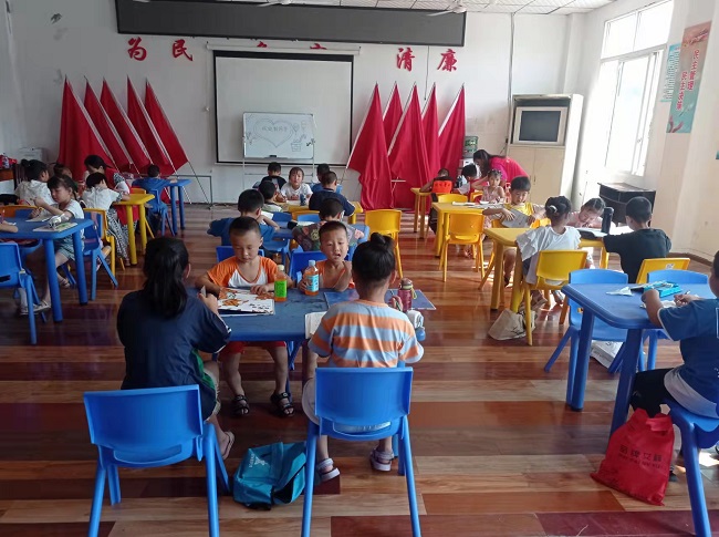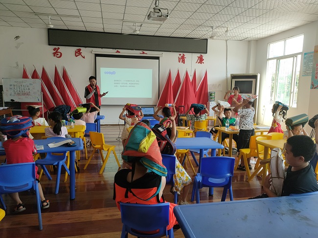 本网讯(图、文/虞青松)2022年7月12日,AWC万象城娱乐“三下乡”社会实践团队——青春伴成长志愿服务队的活动已经开展到第八天了,在这八天里,该团队在学院分团委书记喻剑老师的带领下,紧密结合实际,在各站点组织开展了爱国主义教育、夏季防暑、防震演练、防火灾应急演练、防触电演练等主题活动,并有序组织学生开展日常课业辅导。