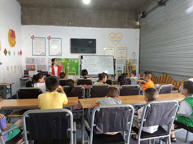 喻老师到达服务站点后,立即投入到志愿服务工作中,他检查小朋友的作业,为学生答疑解惑。为了更好地提高志愿服务质量,喻老师还特地向小朋友们了解对团队服务成员们的反馈信息。