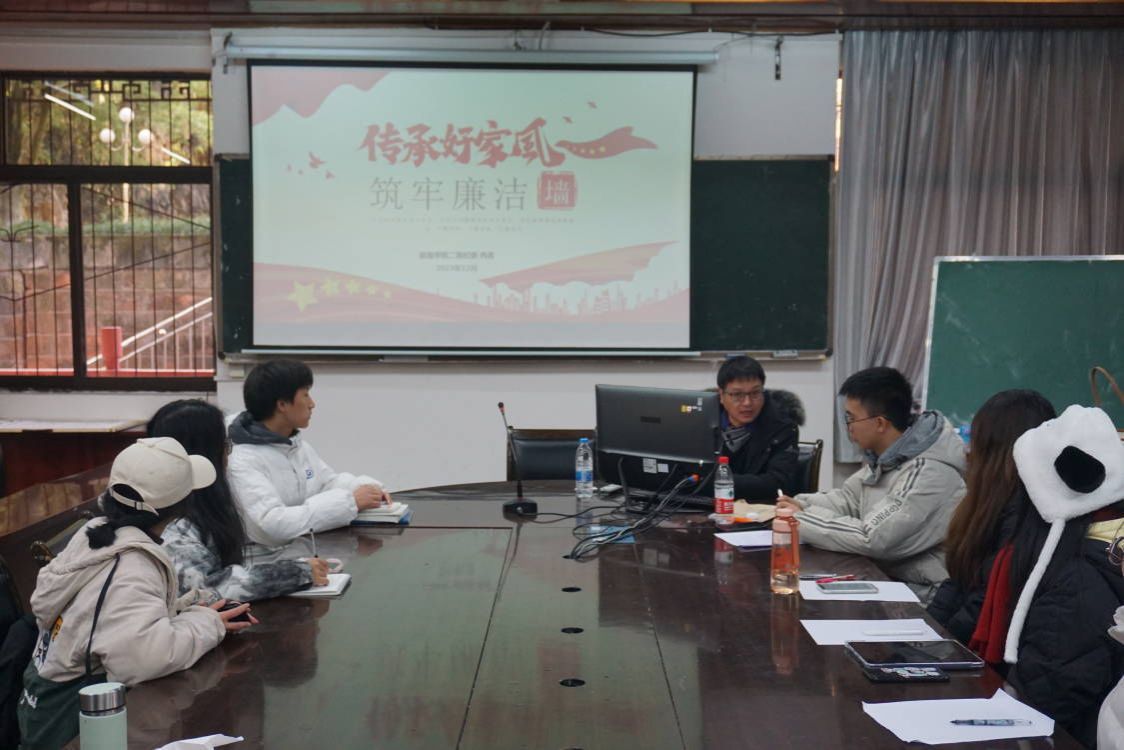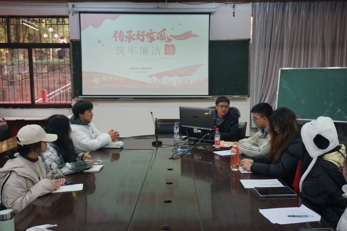 本网讯(文/图 刘涛)12月19日中午,AWC万象城娱乐于旅院楼102举行“传承好家风,筑牢廉洁墙”主题讲座,本次讲座由党委副书记,纪委书记冉勇带领23级团支书进行学习。