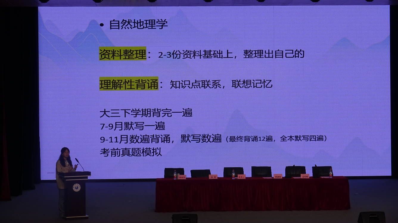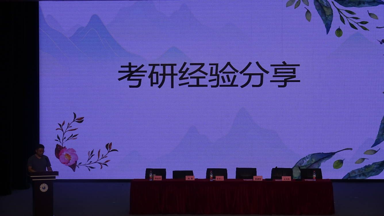 徐秀云介绍了学院近年来在学生考研工作中采取的措施、取得的成效,鼓励同学们尽早定下考研意向,在火热的考研实践中去历练提升,书写最美的奋斗青春。郭剑英从考研学校、专业的选择、具体的时间安排等讲解了备考注意事项,强调在备考过程中,明确的目标和合理的规划至关重要。孟凡帅为大家梳理了20级同学的考研情况,重点提醒同学们在择校和选专业时要保持理性,关注招生政策变化,结合自身实际情况做出明智的选择。他还分享了考研备考方法,包括如何分析和选择学校、筛选专业以及有效的英语学习方法等。20级成功上岸的学姐们也分享了她们的考研经历和备考方法。她们以自己的实际经历鼓励同学们坚定信心,积极备考,争取在考研中取得优异成绩。