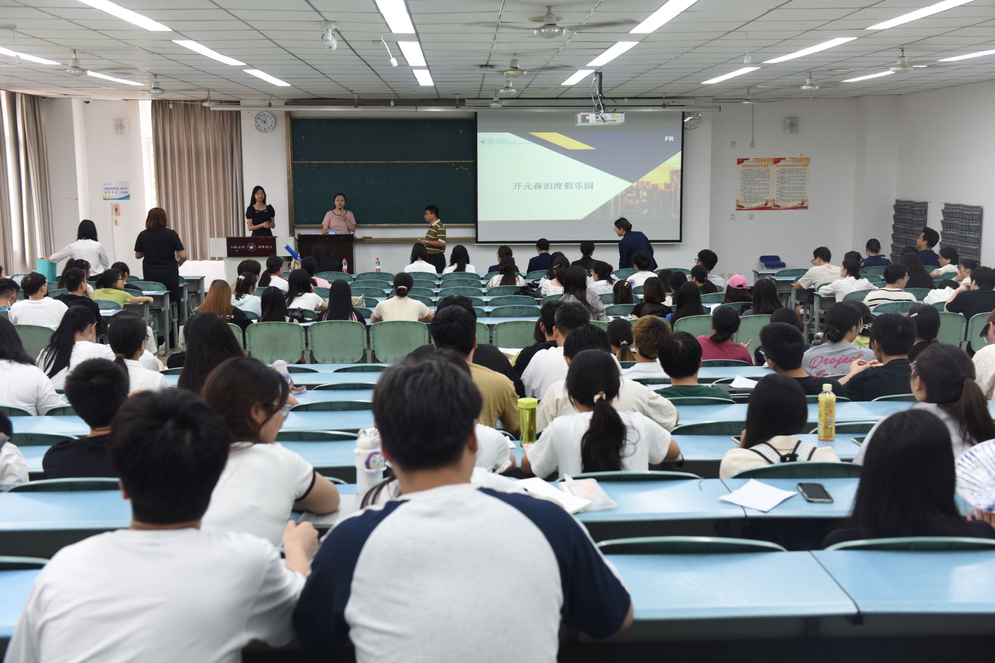 开元森泊度假乐园、厦门温德姆至尊豪庭大酒店等企业的相关负责人先从酒店的位置、环境、优势、发展等介绍了酒店的相关概况。接着,他们详细介绍了实习生的衣食住行、人才培养等内容,并为同学们解答实习的相关事宜。最后,同学们根据自己的情况选择适合的企业前往分会场参加面试。