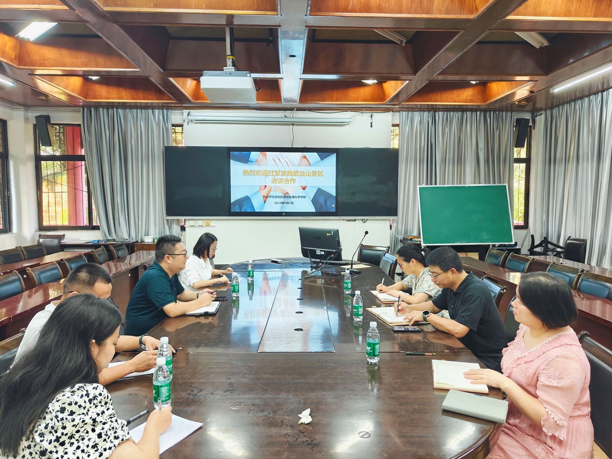 张波详细介绍了红军渡西武当山景区情况,希望在景区旅游专业队伍建设和旅游线路设计等方面与学院加强合作。对此,郭剑英和孙永兴围绕人才队伍建设、共同研发旅游路线作了介绍,表示学院期望通过与景区的合作,培养高质量旅游人才,促进学生高质量就业。