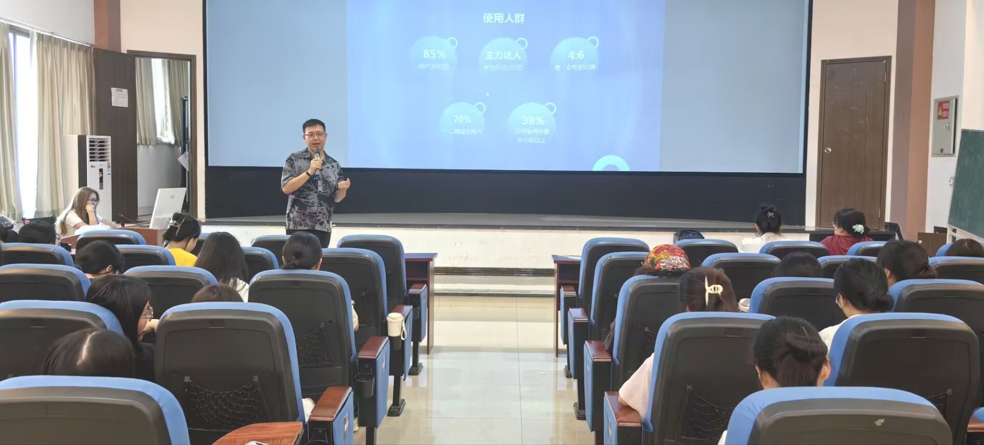 韩雪飞从抖音简介、方向定位、视频制作和运营技巧四个方面入手,为同学们详细讲解了抖音、微视频制作技巧。他列举了大量的调研数据,结合自己的实践经验,带来了一场生动有趣的培训课程。他指出,受众是进行抖音、微视频制作的方向和目标,在制作微视频和运营抖音时要明确受众群体,有针对性地制作视频。
