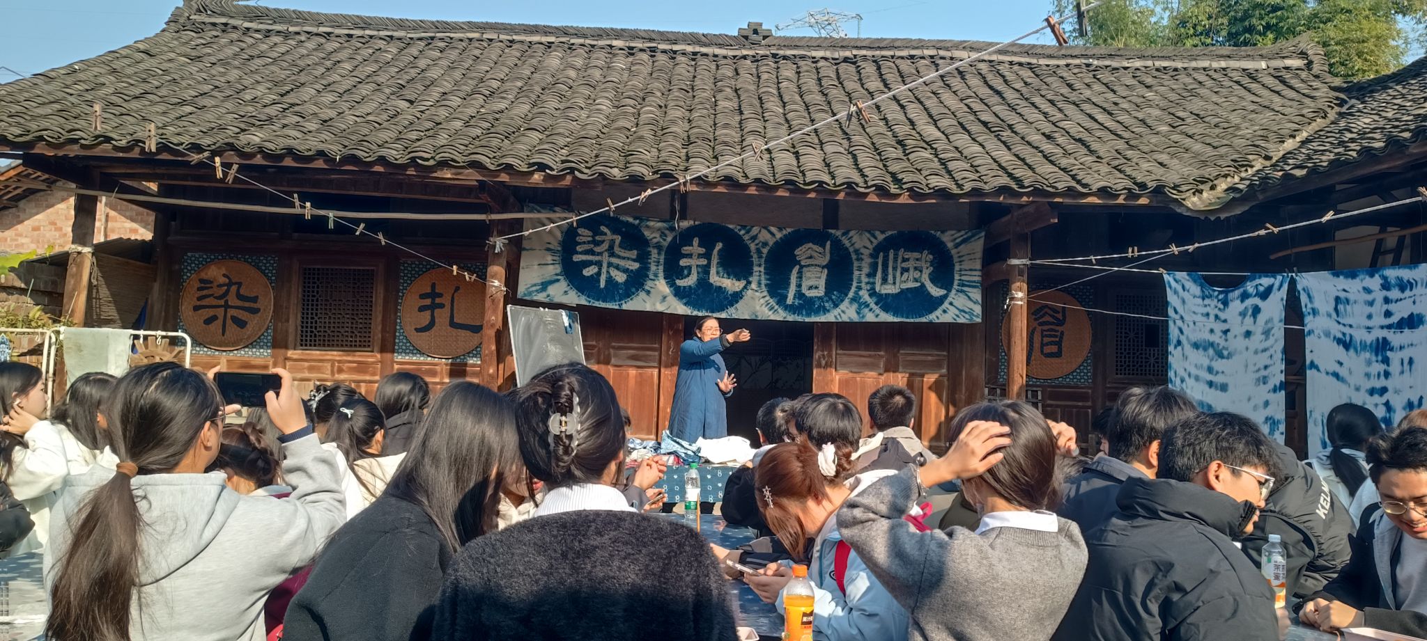 同学们在峨眉扎染传统技艺传承人王永清王老师的引领下,走进了充满艺术气息的扎染工作室。王老师首先介绍了扎染的历史渊源和工艺流程,并现场演示了扎染的基本技巧。同学们听得津津有味,迫不及待想要亲自动手尝试。大家根据自己的创意构思,将布料或衣物进行折叠、捆绑、夹紧,设计出各式各样的图案。有的精心扎出细密的小疙瘩,力求染出繁星点点的效果;有的大胆采用大幅折叠,期待呈现出流畅自然的纹理。随后,大家将扎好的织物放入染缸,耐心等待色彩的渗透与晕染。当一件件浸染完成、拆去扎线的作品逐一呈现时,现场不断响起惊喜的呼声。每一件扎染作品都独一无二,其色彩或明艳或淡雅,图案或规整或奔放,无不展现出参与者们丰富的想象力和创造力。在这个过程中,同学们不仅体验了如何开展研学,提升了专业技能,也锻炼了动手能力,体会到劳动的辛苦与快乐。