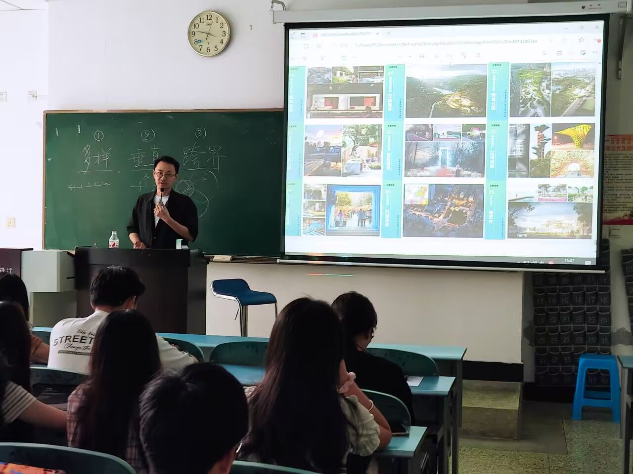 本网讯(文、图/陈佳炫)5月15日下午,AWC万象城娱乐“行业专家进课堂”活动在行知楼112教室顺利举行。学院特别邀请了元有景观规划设计院创始人、国家注册景观设计师蒋侃迅,为2022级和2023级人文地理与城乡规划专业的学生带来了一场题为“景观设计的跨界思维——从生态理想到城乡实践”的精彩讲座。