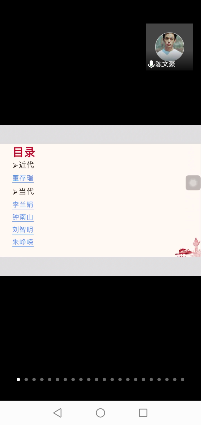 本次活动由来自18级的陈垚负责流程串讲,党校学员以小组为单位选出代表进行PPT展示。全体学员分为四个小组围绕近现代先辈们的先进典型事迹进行论述。通过屏幕分享,结合时事层层导入分析让同学们深入了解,忆古思今。