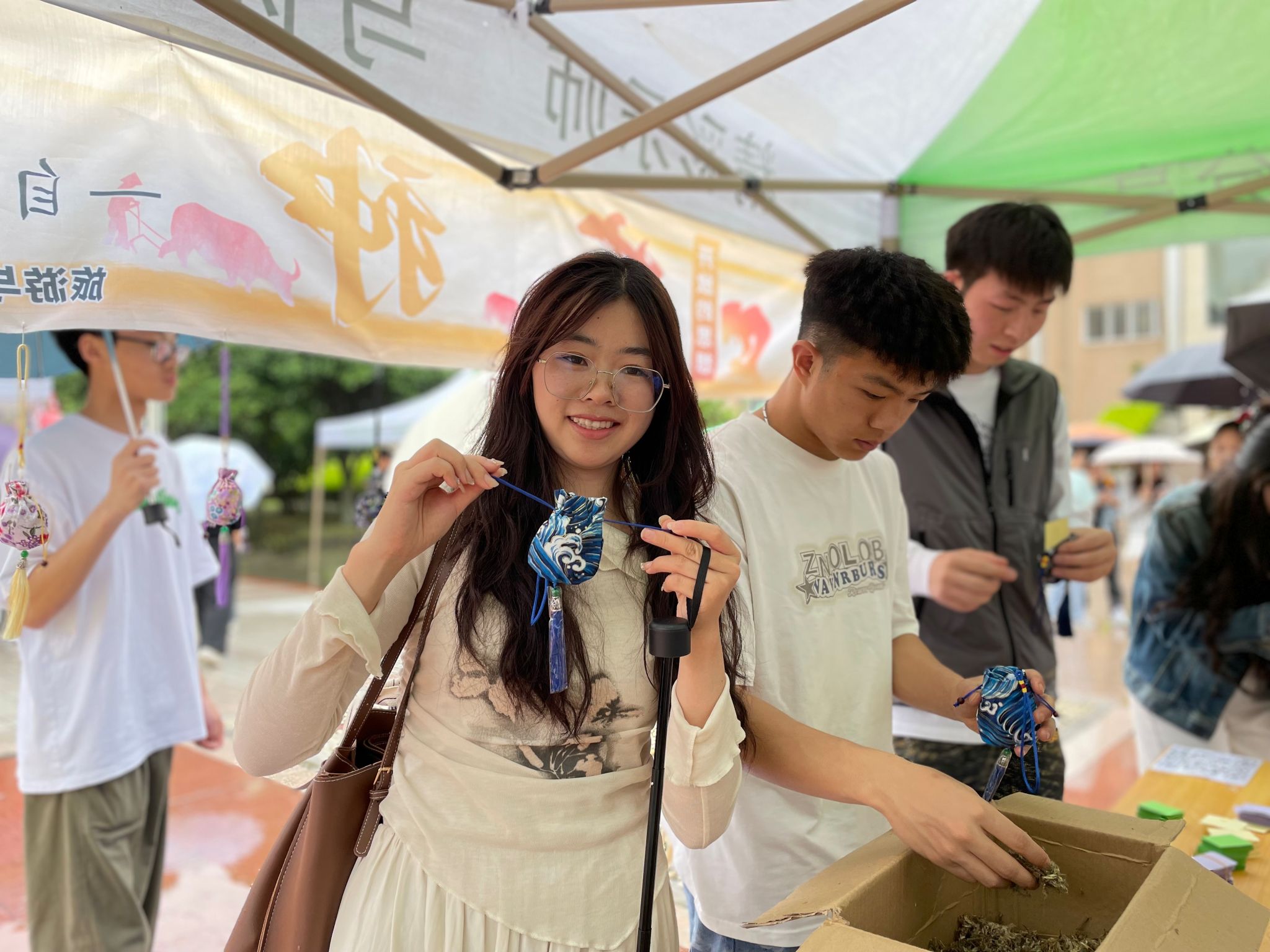 活动吸引了500余名师生热情参与。辅导站负责讲解的志愿者向大家介绍了“芒种”的内涵和艾草香囊的传统知识以及其中蕴含的心理意义,并向大家科普心理健康知识。接着,师生们有序排队挑选了自己心仪的香囊,在彩色纸条上写下自我鼓励的话语,将字条和艾草一起装进香囊里,亲手制作出属于自己的心灵香氛小礼物。活动现场充满了欢声笑语,参加活动的师生不仅收获了香囊,还收获了一份开心和幸福。