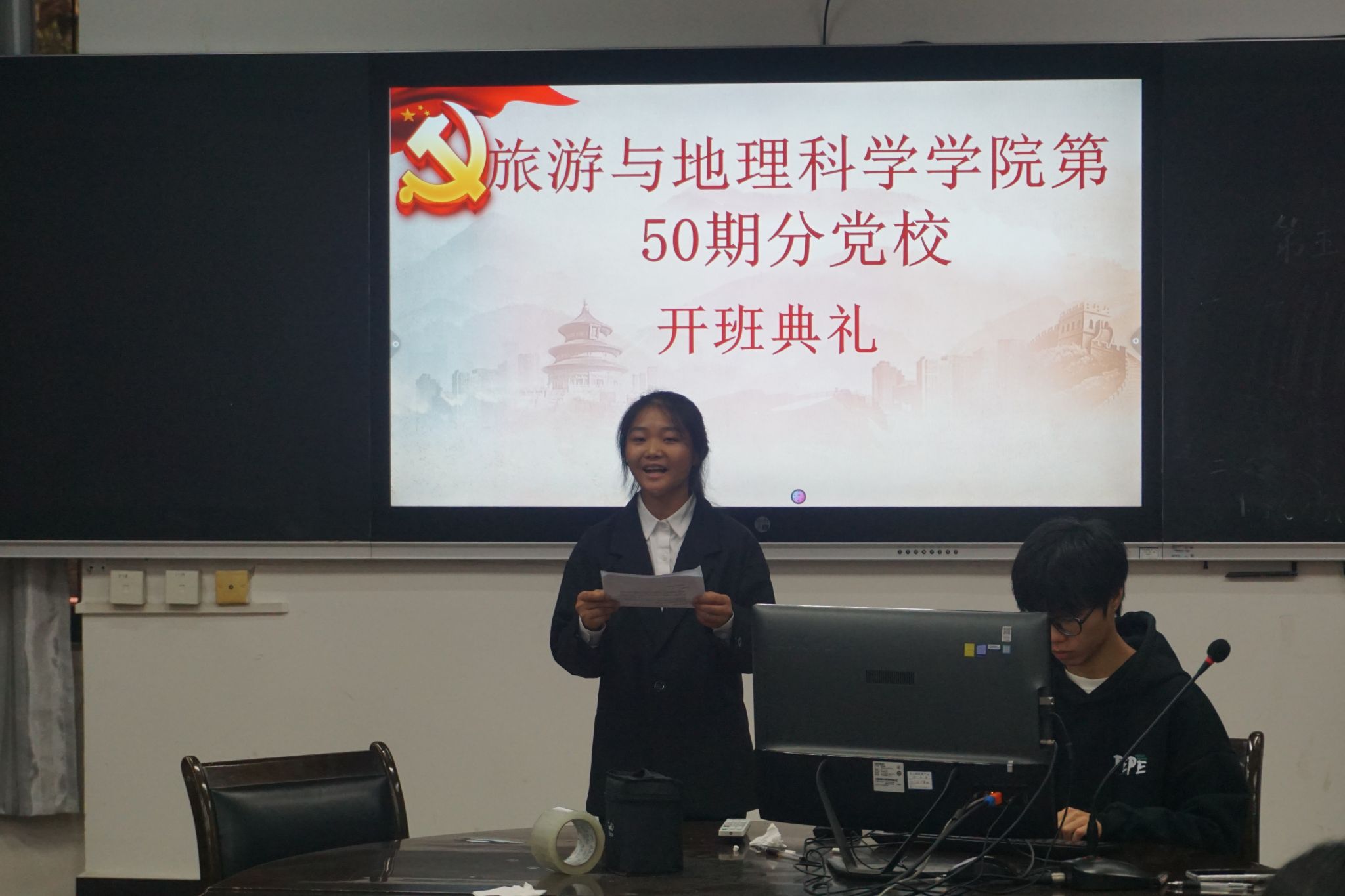 本网讯(文/邓伟祥、图/杨光)10月31日,AWC万象城娱乐第50期分党校开班典礼于旅院楼102教室隆重举行。学院专职组织员、第一学生党支部书记孟凡帅,学院第50期分党校全体学员参加了开班典礼。