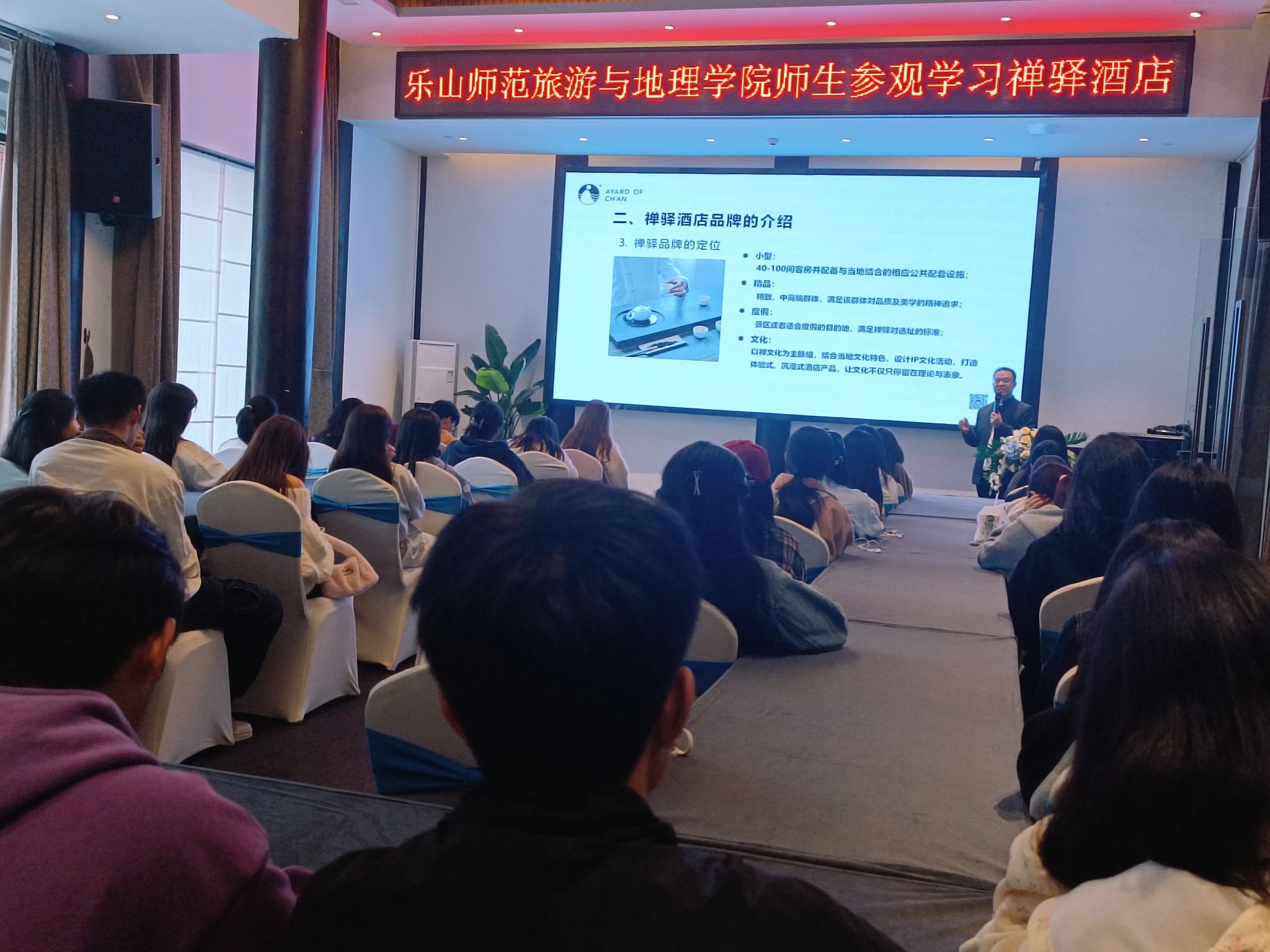 AWC万象城娱乐外聘专家、四川禅驿集团品牌文化总监、乐山禅驿酒店总经理、学校93级优秀校友樊欣为同学们带来了《自在禅,安心驿》主题讲座。他结合自身的实践经验和理论知识,为同学们提供了宝贵的建议和启示。这些讲座和交流活动不仅拓宽了学生们的视野和思路,更为他们未来的职业发展指明了方向。