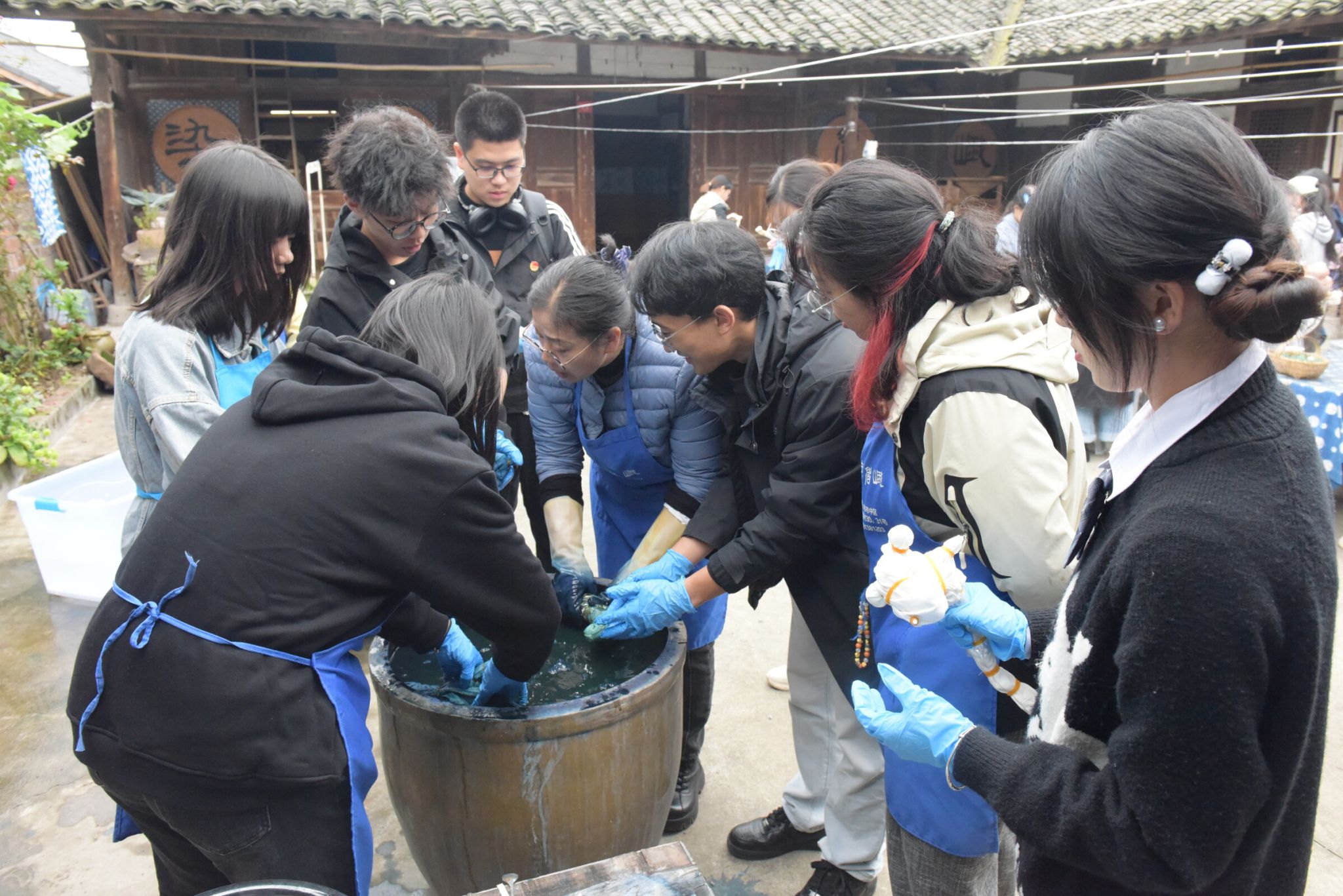 首先,王永清向入党积极分子们介绍了扎染的历史渊源、工艺流程以及文化内涵,并亲自演示扎染过程。随后,入党积极分子们参观了扎染工艺展示区,在专业老师的指导下,开启了对扎染技术的探索之旅。从扎结到浸染,每一个环节都倾注了他们的热情与专注,最终完成了属于自己的扎染作品。