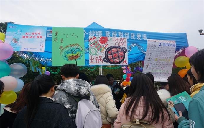 紧接着,礼仪队的礼仪展示、汉服社的舞蹈,轮滑社酷炫的轮滑表演等一系列节目带动着现场气氛。随后,宋天华陪同李东、黄显刚和罗刚参观了各个展厅的布置与游戏活动。每个展厅各具特色,不仅有来自各地的地方特产,重庆火锅、成都麻辣烫浓香四溢,西安龙须糖、普尔话梅挑动味蕾。而且还有有趣的游戏,正话反说、夹弹珠、连连看使人乐在其中。