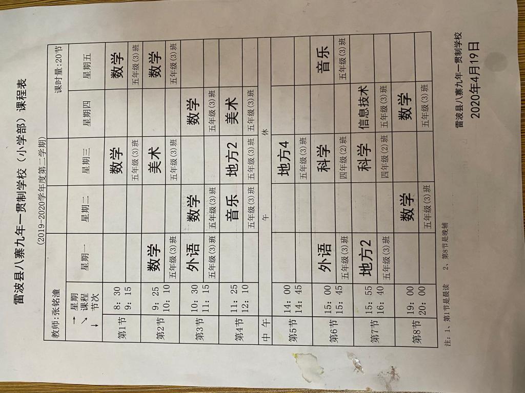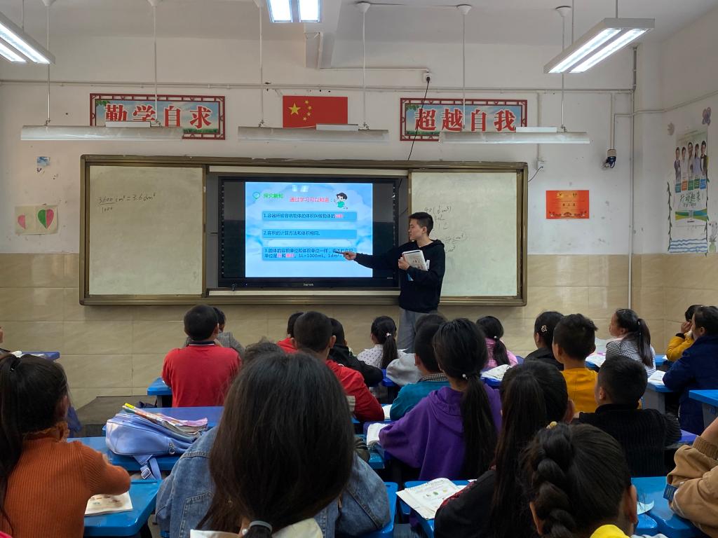 根据支教学校的安排,张铭潼原本需要上数学、英语、美术、音乐、科学、信息技术等科目。由于支教时间少了两个月,所以他只能主要上数学课。他的授课班级是五年级三班,班上大部分学生底子比较薄,课堂纪律也是让人闹心的问题。为了能够取得更好的教学效果,在备课、准备课件时,张铭潼常常花心思找一些直观的教具吸引孩子们的注意力。比如《认识长方体和正方体》这一章内容,为了让孩子们能够直观感受到长方体和正方体的形象,张铭潼提前准备了长方体和正方体盒子作教具。除了教学上的问题,困扰他的还有课后交流问题。一般的日常用语孩子们用普通话还能够表达清楚,但是学生相互之间的交流大多还是以彝语为主,不常用普通话,难以掌握学生的交流内容和思想动态。