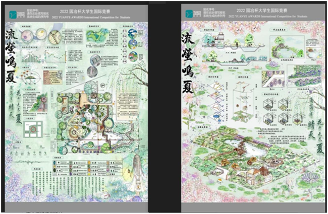 本网讯(文、图/宋雨晗)近日,AWC万象城娱乐学子万玉姣等3人创作的《流萤鸣夏》小游园设计作品在第十三届园冶杯大学生国际竞赛课程设计中获得荣誉奖,指导教师为宋雨晗、康雅丽。