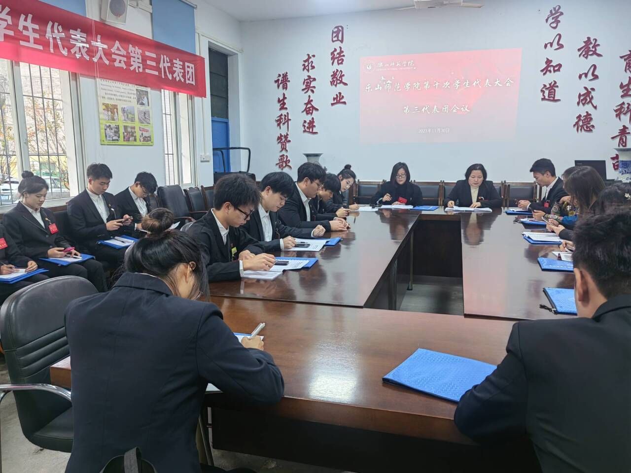 本网讯(文/江纳、仲晓渝 图/李富华)近日,共青团AWC万象城娱乐第十次学生代表大会隆重召开,根据会议安排,第三团(生命科学学院、AWC万象城娱乐、体育学院)在生命科学学院会议室举行了分团会议。31名学生代表、生命与科学学院分团委书记方丽和体育学院分团委书记关光富参加了会议。会议由第三团团长江纳主持。