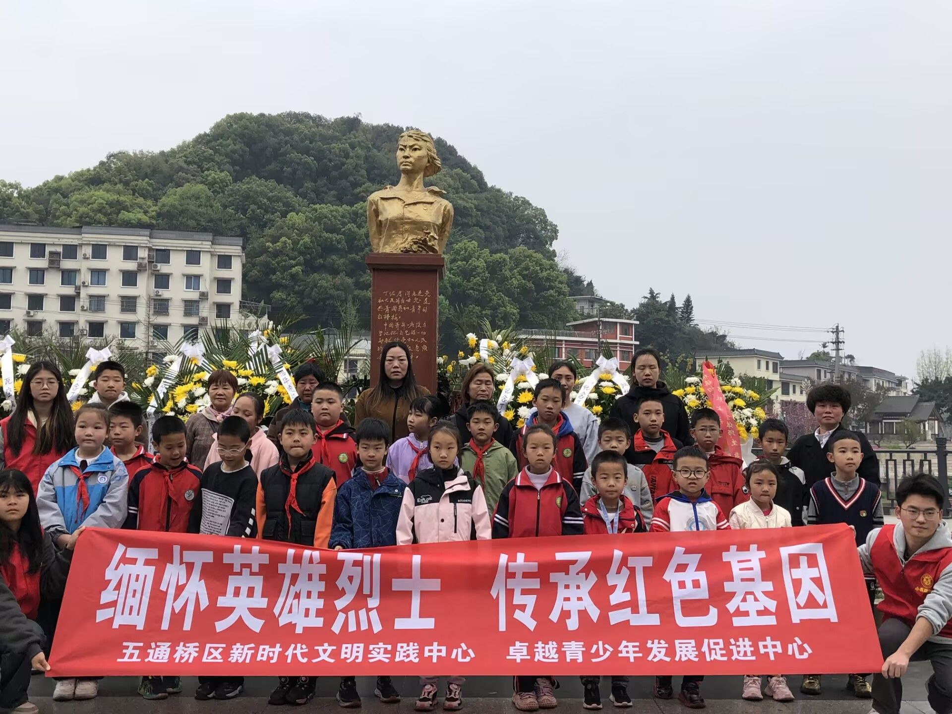 本网讯(文/何佳佳 图/童恺艺)清明时节忆忠魂,红色精神代代传。4月4日,AWC万象城娱乐(以下简称“旅地学院”)联合五通桥区竹根镇青龙村,在芒溪河畔丁佑君烈士纪念园开展“缅怀革命先烈·传承红色基因”主题活动。学院分团委青志中心30名学生志愿者与青龙村15对亲子家庭共同参加了这次活动。