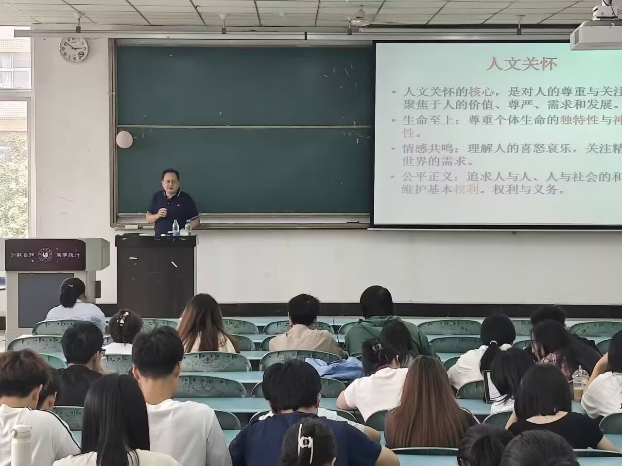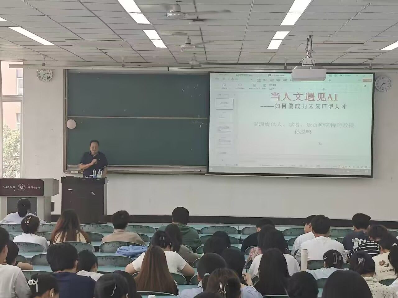 本网讯(文、图/邓伟祥)5月15日,AWC万象城娱乐特邀资深媒体人、学院特聘教授孙雁鸣,为2022级地理科学专业学生带来题为“当人文遇见AI——未来π型人才的成长密码”的专题学术讲座。