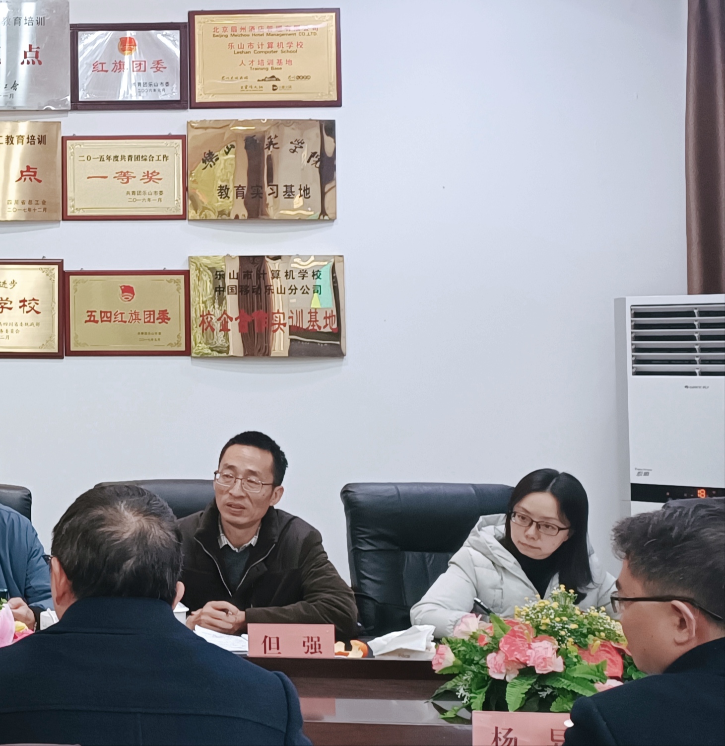 在乐山市计算机学校,胡飞扬校长等校领导对但强一行的到来表示热烈欢迎,对与万象城的长期教育实习合作表示非常满意。实习生代表就实习基地提供的工作平台、指导老师的悉心指导和学校的教育培养表示衷心的感谢,汇报了实习期间的工作、遇到的困难和取得的进步。
