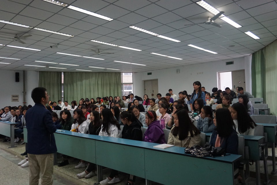 讲座伊始,王书记介绍了三位校友,并代表学院对校友的到来,表示热烈欢迎。在讲座中,校友们不仅和师弟师妹们愉快地分享了自己的大学学习生活、就业、创业的丰富经历,与大家交流成长就业路上的艰辛和创业过程中所积累的经验,还现场进行了轻松开放的互动问答。并鼓励同学们在就业、创业道路上要有勇气和自信,要具备持之以恒的精神和意识。校友王碧光特别向大家分享职场中的升职秘诀:“感恩,自信,专注”。