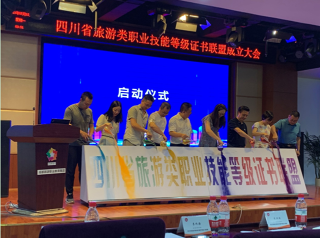本网讯(文/图 陈金龙)7月12号上午,在成都旅游职业教育集团公共基地举行了四川省旅游类职业技能等级证书联盟成立大会。万象城作为副理事长单位,由旅游学院旅游管理专业负责人陈金龙老师代表出席。