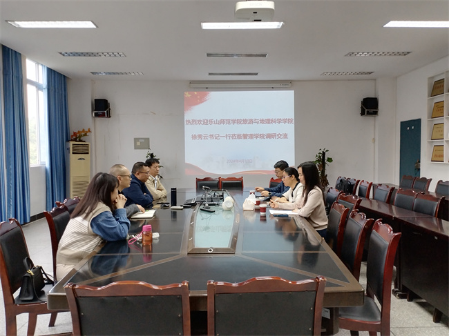 在地理科学学院会议室,地理科学学院院长张斌、党委副书记杨霞、副院长罗明良以及四川省干旱河谷土壤侵蚀监测与控制工程实验室副主任舒成强介绍了学院硕士点从无到有的过程、近年来取得的成效,分享了实践教学环节的经验做法。大家进一步探讨交流,就下一步双方实践教学方面的合作达成初步意向。