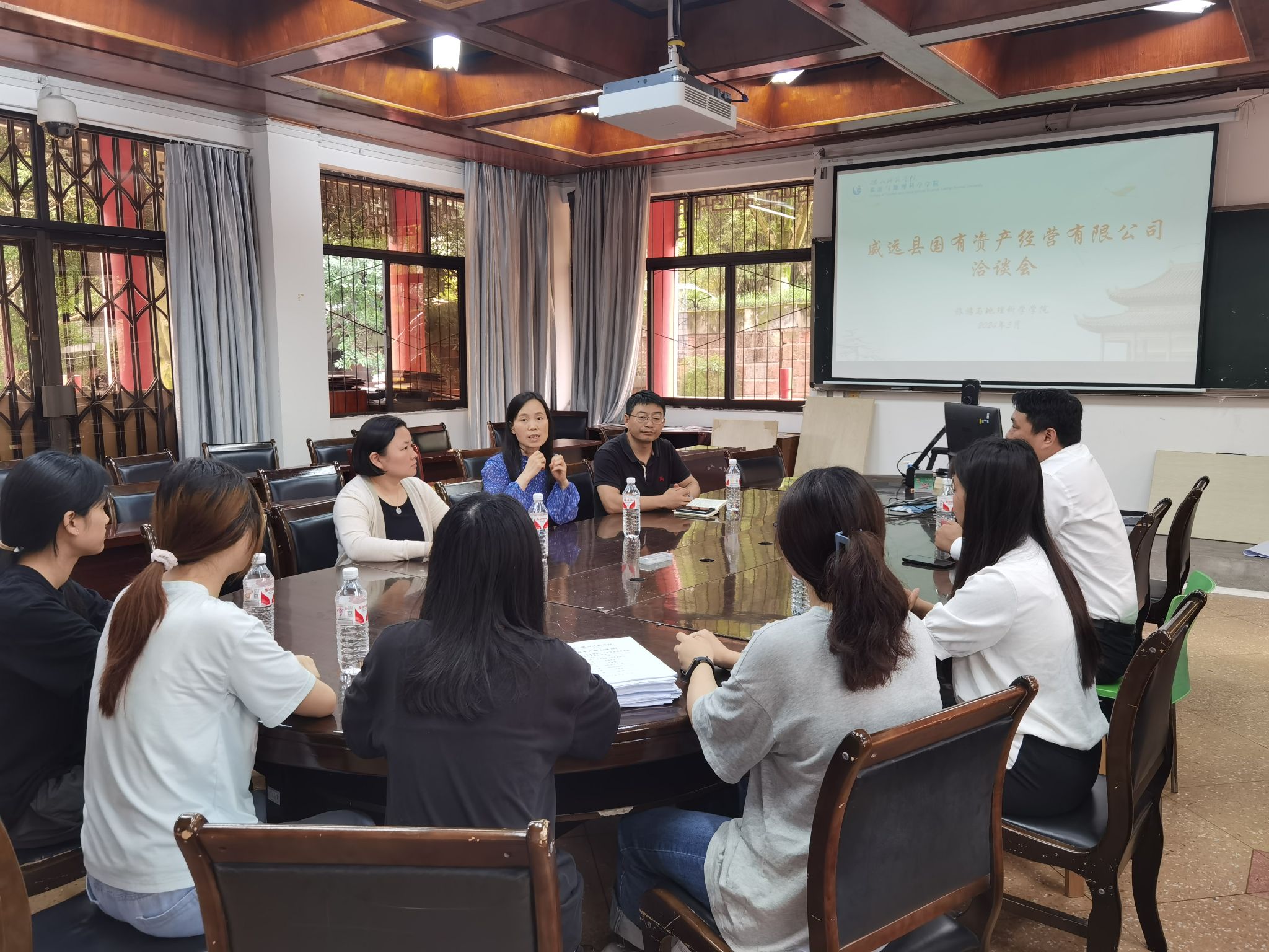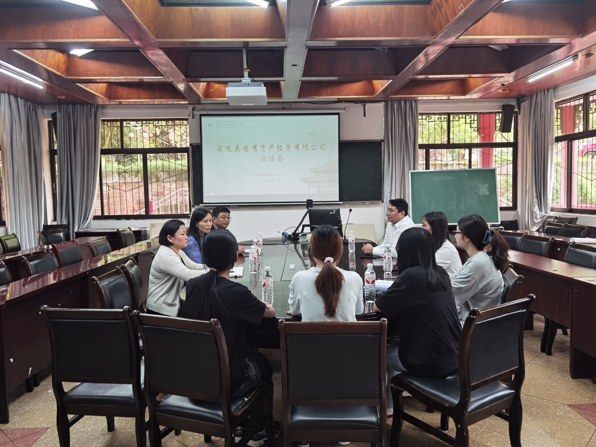 本网讯(文、图/郑曾俊)5月10日上午,威远穹窿旅游投资开发有限责任公司执行董事郭飞、综合管理部代理部长夏雨到AWC万象城娱乐洽谈学生实习合作事宜。学院党委书记徐秀云,副院长孙永兴,学院分团委书记、学生工作办公室主任江纳,辅导员郑曾俊以及部分有赴威远县石板河景区实习意向的学生参加了座谈交流。