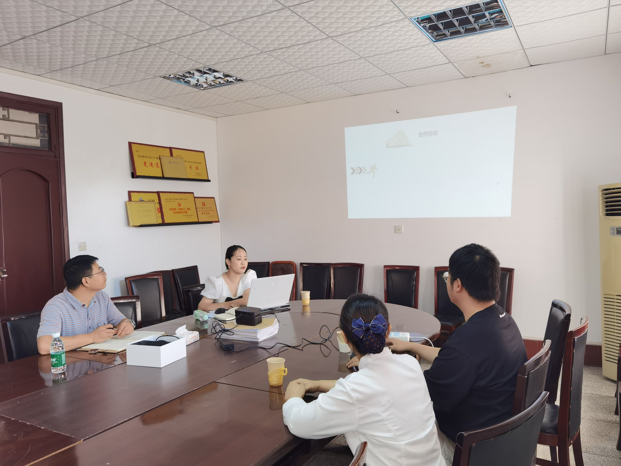 孙永兴代表学院欢迎付桐桐一行的来访,也对学院两位优秀校友——付桐桐、范茂晨毕业后能返校为师弟师妹们提供实习就业机会表示由衷的感谢。付桐桐对双方合作模式、奖励机制等内容谈了公司的想法,特别是在合作模式方面,她从实践要求、实践内容与地点、实践类型三个方面做了详细介绍。随后,双方就实习协议、实习时间、实习岗位等内容进行了深入讨论和交流。