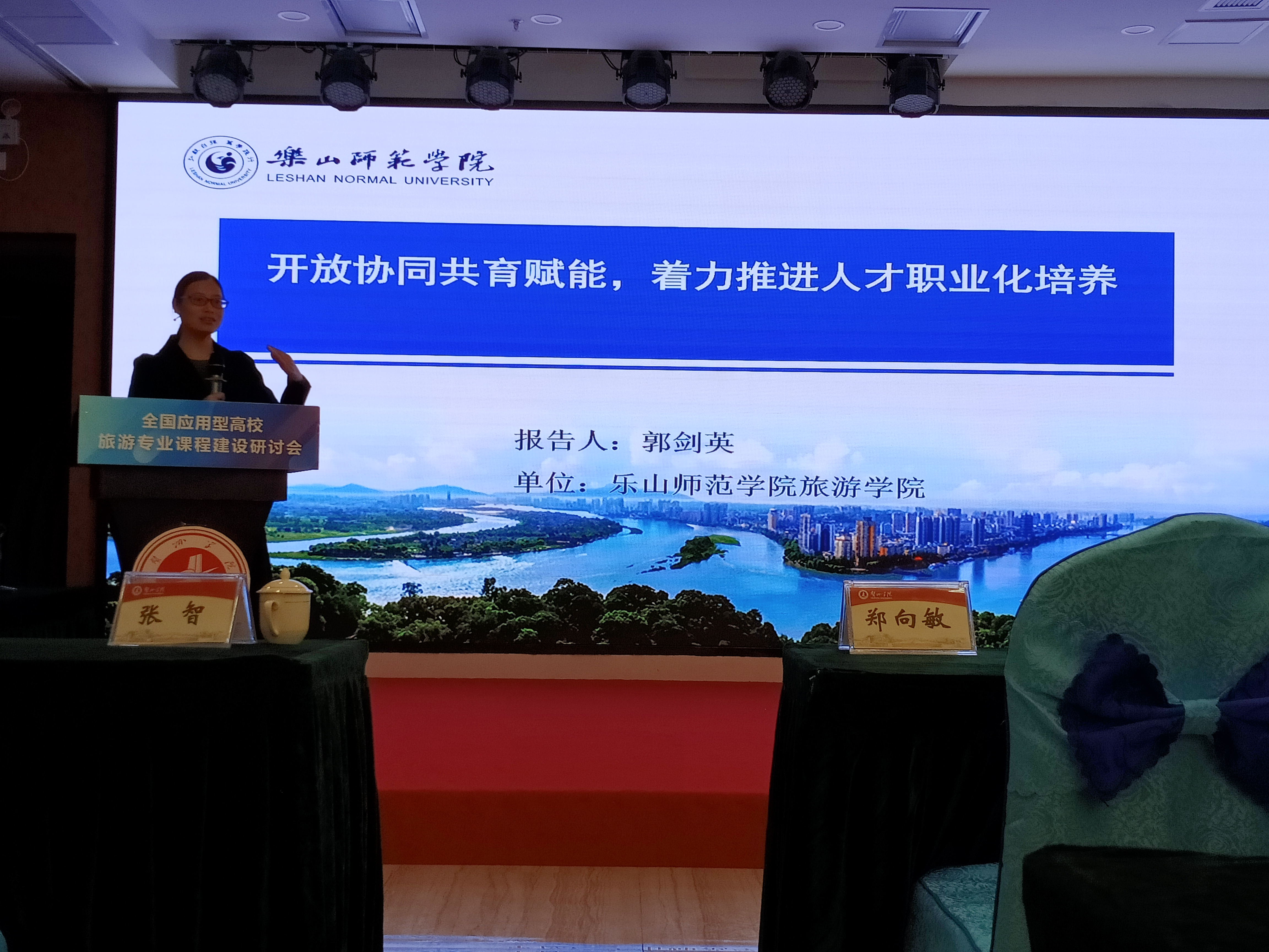 研讨会还进行了“新文科建设与人才培养”校长论坛,以及“旅游教育专业建设、课程创新与人才培养”“新时代实验实践教学与复合型旅游人才培养”“产教融合、产学实践模式、经验与瓶颈突破”专题研讨。郭剑英在“旅游教育专业建设、课程创新与人才培养”研讨环节做了《开发协同共育赋能,着力推进人才职业化培养》的主题报告,并主持了“产教融合、产学实践模式、经验与瓶颈突破”专题研讨会。