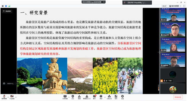 郭剑英主持了分论坛一“世界名山保护与历史文化传承”第二阶段的会议。刘洪江在分论坛二“区域经济发展与共同富裕”作了题为《云南省综合灾害风险分析与防灾减灾实践》成果交流分享。冯晓兵在分论坛三“乡村振兴与乡村文旅融合”作了题为《旅游景区经济联系和空间结构特征分析》成果交流。
