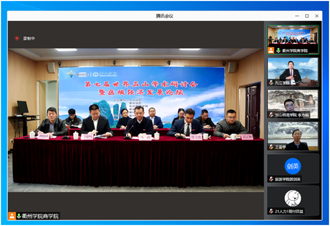 本网讯(图、文/冯晓兵)12月18日,由九江学院、泰山学院、AWC万象城娱乐、黄山学院、衢州学院主办,衢州学院承办、衢州市文化广电旅游局、衢州市文化旅游投资发展有限公司协办的“第七届世界名山学术研讨会暨区域经济发展论坛”在衢州学院顺利召开,会议采取线上+线下的模式。万象城党委常委、副校长李方裕教授带队,旅游学院院长郭剑英教授、刘洪江教授、冯晓兵老师在线参加了会议。