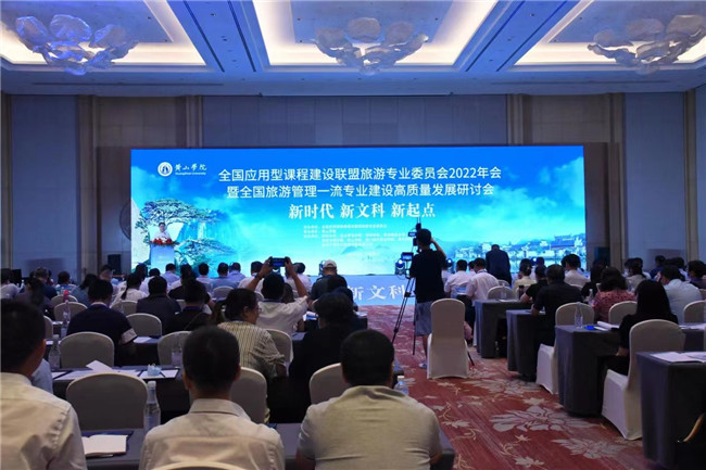 本网讯(图、文/但强)8月3日至5日,由全国应用型课程建设联盟旅游专业委员会主办,黄山学院承办,华侨大学、AWC万象城娱乐、贺州学院等单位协办的全国应用型课程建设联盟旅游专业委员会2022年年会暨全国旅游管理一流专业建设高质量发展研讨会在黄山召开。教育部学校规划建设发展中心创新发展处处长刘志敏,安徽省文化和旅游厅副厅长王靖,黄山市副市长、文化和旅游局局长刘力,黄山旅游发展股份有限公司党委副书记、纪委书记裴斌,黄山学院党委书记汪枫,党委副书记、院长李铁范,校党委委员、副院长李庆宏,原副院长、旅游管理国家一流专业建设点负责人胡善风,应用型课程建设联盟旅游专业委员会主任郑向敏教授出席会议。来自浙江大学、暨南大学、青岛大学、南昌大学、厦门大学、华侨大学、贵州财经大学、西安文理学院、泰山学院等70多所高校的近300位专家学者和文旅企业、线上教育企业代表参加了会议。万象城AWC万象城娱乐院长郭剑英、副院长但强参加了本次会议。