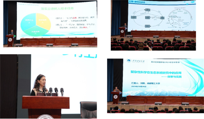 在上午的主报告环节,多位知名专家学者围绕会议主题发表了精彩的专题报告。周尚意教授深入剖析了乡村土地利用在不同尺度上的关联性;蒋先军教授提出了农田土壤氮循环过程中的关键科学问题;何思明研究员详细介绍了地质灾害监测预警系统的构建原理和技术方法;李亦秋教授深入探讨了县域国土空间规划在国土整治和生态保护与修护中的重要作用,并提出了相应的规划建议和实施策略;刘刚教授围绕生态系统研究的复杂性,探讨了复杂性科学在生态系统研究中的应用前景和实践价值;庄永红老师则从地理核心素养培养的角度出发,分享了“土地利用与生态文明教育”的教学经验和思考,为参会者提供了新的教育理念和教学方法。在下午的分论坛讨论中,参会代表围绕“乡村土地利用规划”“农田土壤保护与修复”“地理核心素养”等议题展开了深入交流。