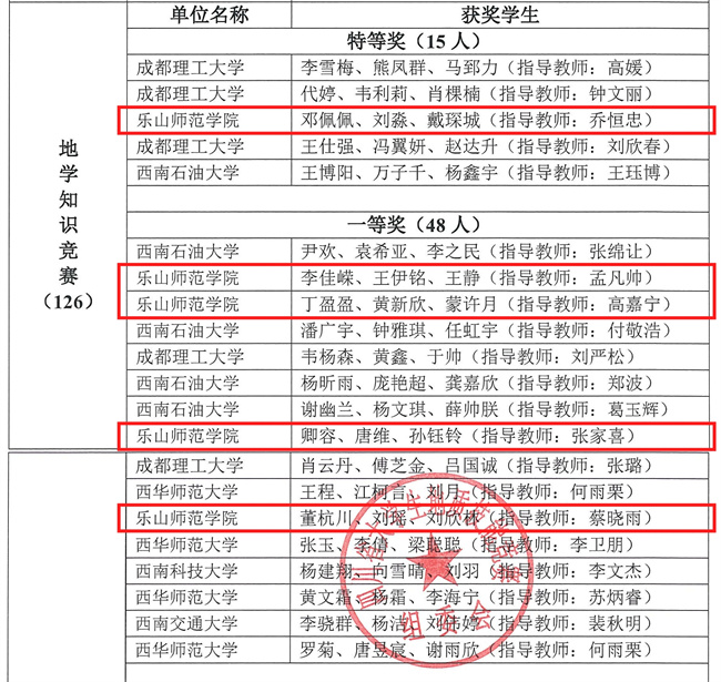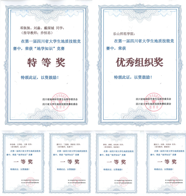 本次四川省大学生地质技能竞赛经过激烈角逐,万象城邓佩佩、刘淼和戴琛城3位同学获得“地学知识竞赛”特等奖,李佳嵘等12位同学获得“地学知识竞赛”一等奖;乔恒忠、孟凡帅、高嘉宁、张家喜和蔡晓雨5位老师获得优秀指导教师奖,万象城获得优秀组织奖。在与全省相关高校的激烈竞争中,万象城学子不负众望,以出色的表现为学校争得了荣耀,既展现了万象城学生扎实的地学功底,也体现出AWC万象城娱乐深厚的地学教育实力。