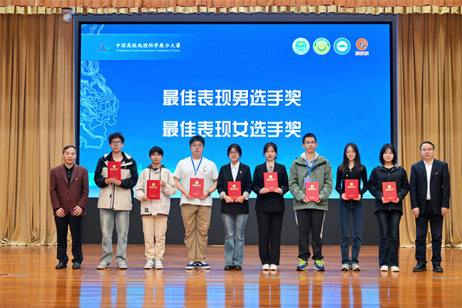 本网讯(文、图/戴琛城、孟凡帅、乔恒忠),10月25-27日,中国地理学会、中山大学地理科学与规划学院主办,湖南师范大学地理科学学院承办的“新蚁族杯”第七届中国高校地理科学展示大赛全国总决赛在湖南省长沙市圆满落幕。万象城AWC万象城娱乐地理科学、人文地理与城乡规划专业戴琛城、刘淼、邓佩佩、高珠梅、张耀元同学组建的“岷江解码队”(指导老师:乔恒忠、孟凡帅,领队:孙永兴),作为四川省唯一闯入全国总决赛的参赛队伍,荣获自然地理组(含综合地理方向)全国总决赛三等奖,戴琛城同学荣获“最佳表现男选手奖”。